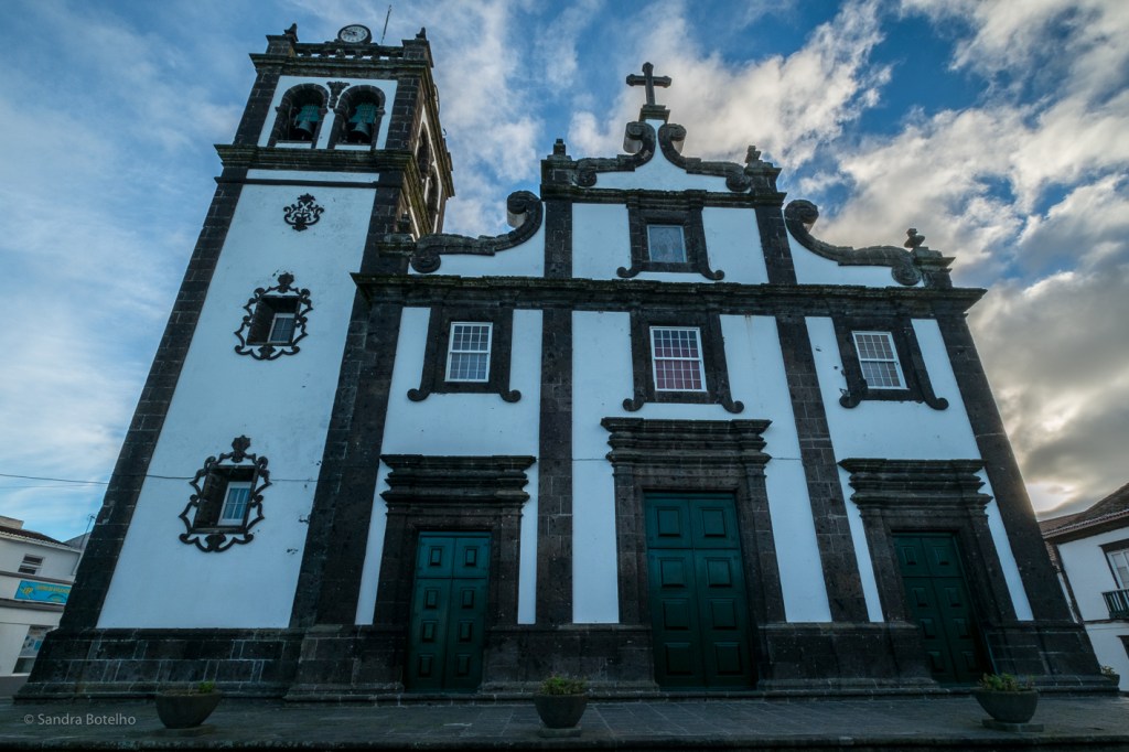 Paragem obrigatória na Igreja Paroquial de Nossa Senhora dos Anjos. Esta igreja também tem um fontanário na escadaria que a antecede. Aproveitámos que estava aberta e entrámos, já conhecia o seu interior, mas nunca é demais apreciar os pormenores. Esta igreja que foi edificada no mesmo local da antiga igreja que também já era dedicada à Nossa Senhora dos Anjos. Esta primeira igreja a construção remonta aos tempos do povoamento desta ilha de São Miguel. Segundo uma lápide que se encontra no interior da igreja este templo data de 1488. Nesta lápide pode ler-se a transcrição de uma carta passada a favor do Frei Estevão, frade da Ordem de Cristo, que foi no mesmo ano, capelão de Santa Maria dos Anjos da vila nova de Água de Pau. Contudo no ano de 1522, a primitiva igreja de Nossa Senhora dos Anjos foi destruída pela erupção vulcânica de Vila Franca do Campo, a sua reconstrução deu-se a 10 de novembro de 1525. O atual frontispício da igreja é em estilo barroco e completou-se em 1774 e nele está gravada a cruz da Ordem Militar de Nosso Senhor Jesus Cristo, visto que esta igreja, tal como todas as outras igrejas do arquipélago açoriano, como nos explica o Padre João José Tavares, pertenciam à dita Ordem.