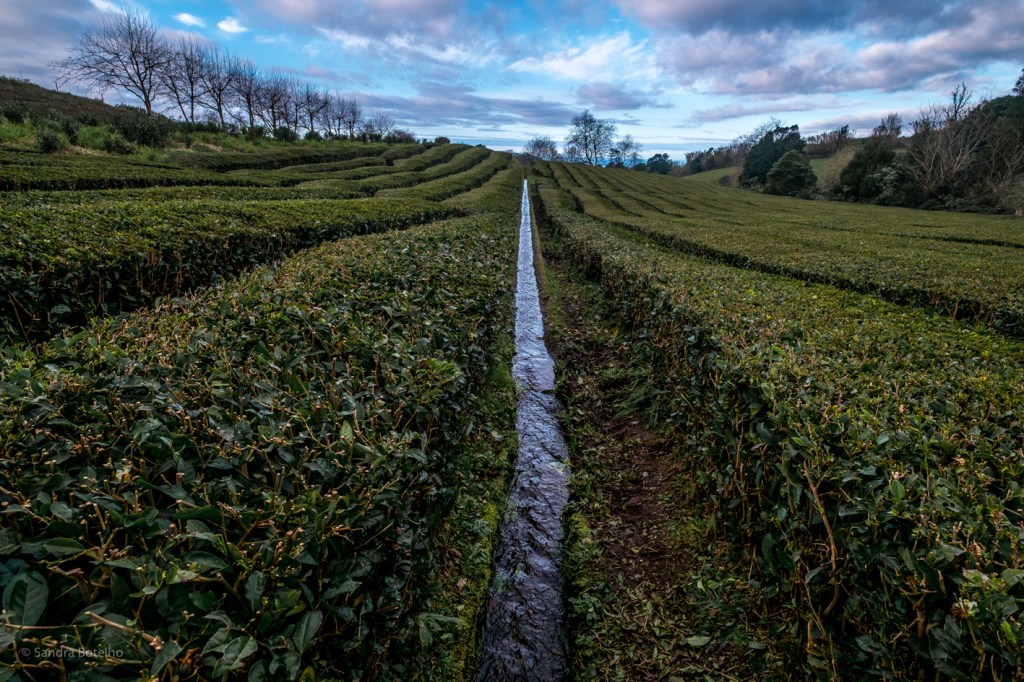 Com a leitura interpretativa do trilho em dia meti-me a caminho, o mesmo começa por serpentear por entre as plantações do chá até chegar a um mirante, cujo sinal indica ser o caminho errado, mas não resisti e subi as escadas para ir espreitar a vista. Daqui temos uma vista soberana sobre as plantações de chá, um tanque e a casa anexa à fábrica do chá. Posto isto, voltei ao caminho oficial e a próxima paragem foi junto ao tanque. Este coleta a água que chega de uma levada de 800 metros, sendo esta captada na Ribeira da Cafua. A função principal deste tanque é acumular água para criar caudal de modo a alimentar uma turbina de produção de energia hidroelétrica. Segundo uma placa informativa que se encontra junto ao tanque, as máquinas que produzem a energia hidroelétrica foram instaladas no início do século passado, mas, na atualidade, continuam a funcionar na perfeição, o que me leva a pensar que tudo o que é de fabrico antigo é que é bom!