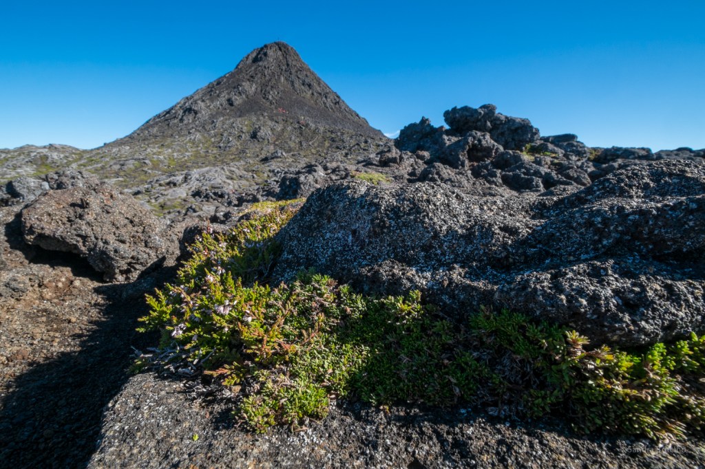 São 7 horas da manhã, dia 22 de agosto e já me encontro no sopé da casa da montanha a contemplar a majestosa montanha. Veem-se pontos de luz a movimentarem-se pelo trilho, parecem pirilampos, mas não, são os que já partiram na subida para tentar apanhar o nascer do sol no piquinho. O dia apresenta-se promissor, céu, praticamente, limpo e no meio da minha concentração para iniciar a subida ouço a guia a dar as explicações acerca do modo como irá decorrer a mesma e o que devemos ou não fazer. Por fim, diz que somos um grupo de sorte por apanharmos um dia assim. Pegamos nos bastões e começamos a caminhar (para esta subida decidi ser acompanhada por uma guia da montanha de modo a ter a certeza que o percurso seria feito pelo caminho, digamos, mais fácil, seguindo sempre dentro do trilho para que a nossa passagem por este local não deixasse marcas e preservasse a flora endémica característica da montanha. O cheiro a tomilho bravo pela fresca da manhã é tão agradável).