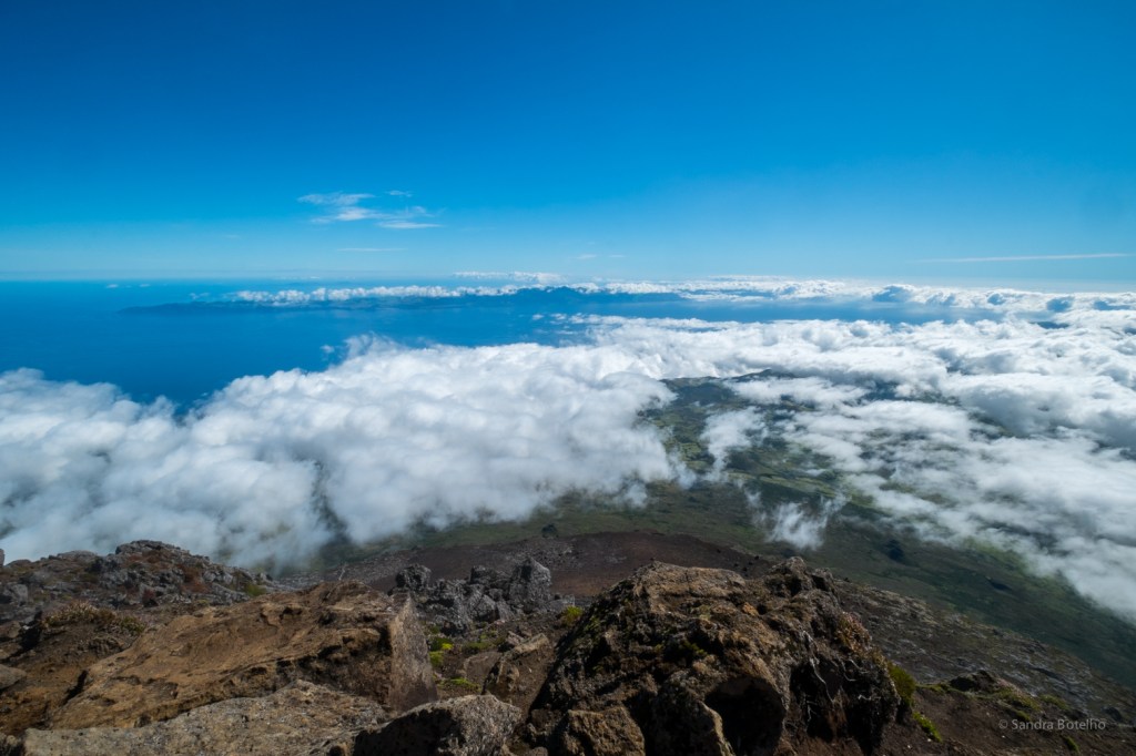 Chegados à cratera central formada na segunda erupção, conhecida como o Pico Grande, deparamo-nos com um cone de lava, o Pico Pequeno ou Piquinho, este é fruto da terceira e última erupção e para se chegar ao ponto mais alto de Portugal é preciso subi-lo. No cimo do Piquinho há um marco geodésico no qual se lê a seguinte inscrição: “1994”, foi aqui que almoçamos com uma vista deslumbrante sobre as ilhas do Faial, São Jorge, Graciosa e a, tímida, Terceira.