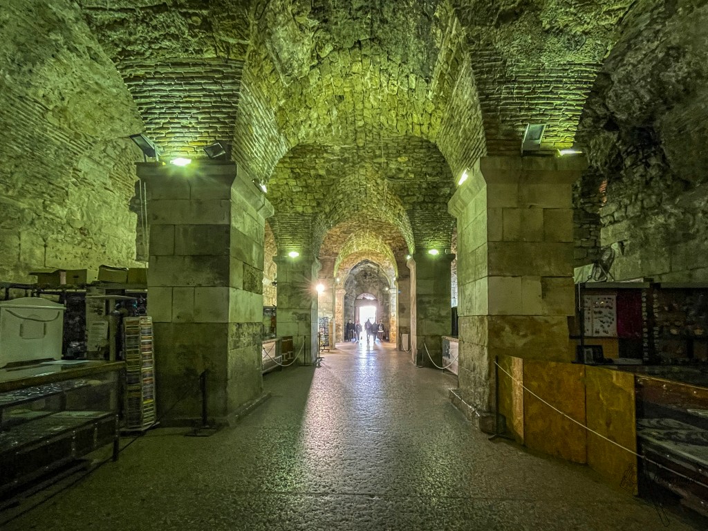 Na vizinhança o templo dedicado a Júpiter, que atualmente, é o Batistério de São João. Este costumava ficar de frente para o mausoléu de Diocleciano, mas nos nossos dias encontra-se “espremido” entre as casas vizinhas. Em frente a este templo existe uma segunda esfinge que foi decapitada quando os cristãos tomaram o palácio como símbolo de vingança. Uma curiosidade, este templo fica na rua mais estreita do palácio. Ainda se pode encontrar neste espaço as adegas do palácio que são mundialmente famosas graças à série Guerra dos Tronos, uma vez que foi aqui que foram filmadas as cenas das catacumbas, nas quais Daenerus trancava os seus dragões. De referir que nunca vi a série, pelo que quando li o que havia sido aqui filmado fiquei na mesma apreciando o espaço como sendo uma adega.