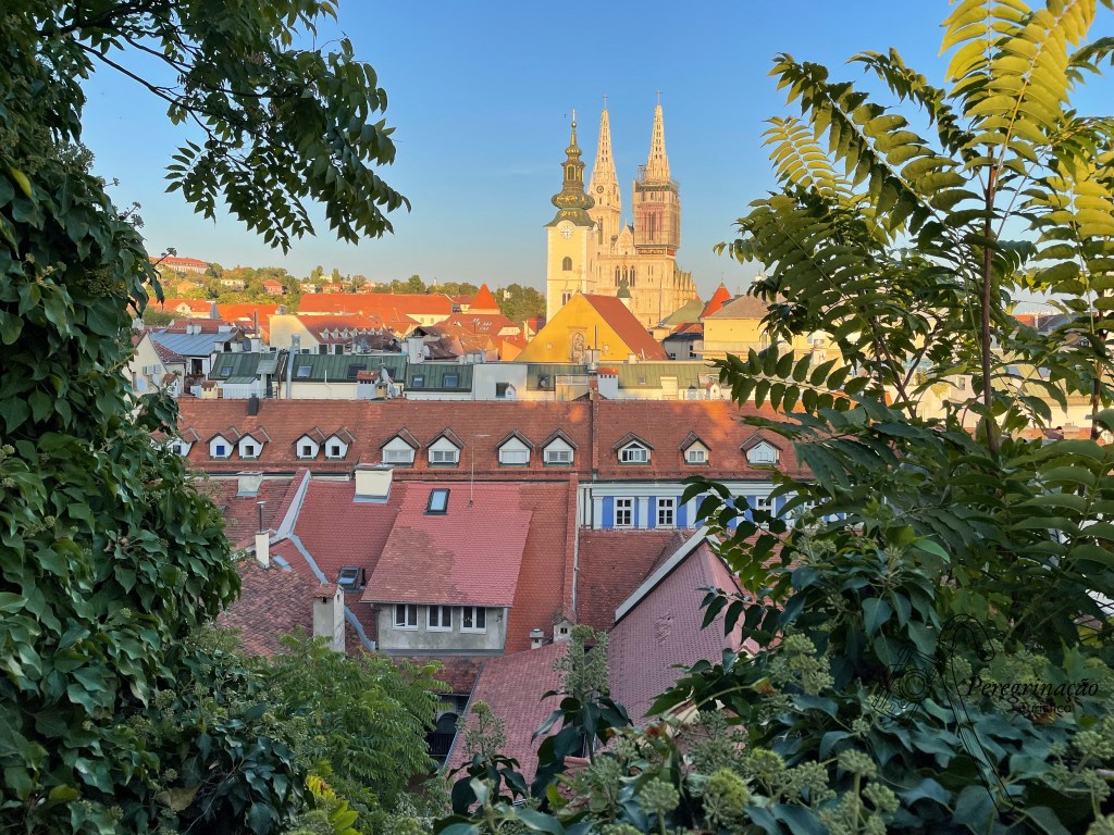 A exploração continuou e rumou em direção à rua mais movimentada de Zagreb, a rua Tkalčićeva que deve o seu nome a um famoso historiador e padre croata Ivan Krstitelj Tkalčić. Esta artéria antes era chamada de Potok Ulica, já que ali corria um riacho cuja nascente vinha da montanha Medvednica, se olharmos com atenção, as curvas e contracurvas da rua lembram a forma duma ribeira. Uma curiosidade, na Segunda Grande Guerra Mundial Tkalčićeva era famosa pelos seus bordéis. Na atualidade é famosa pelos seus bares, diversão e energia, a qualquer hora do dia e da noite. Foi aqui que viemos acabar a noite, a beber uma cerveja bem fresquinha e um vinho branco de chorar por mais. Contudo, antes de chegar a noite ainda houve tempo de visitar a Torre Lotrščak (Kula Lotrščak), localizada na parte antiga da cidade chamada de Gradec (cidade Alta), esta é uma construção do século XIII, tendo sido erigida para porteger o portão sul. O nome Lotrščak deriva do latim campana latrunculorum, que significa em português “sino dos ladrões”, uma vez que, no ano de 1646, esta torre teve um sino pendurado que todas as noites tocava para sinalizar o encerramento do portão e todos os moradores desta localidade que não se encontravam dentro dela viam-se obrigados a dormir fora da cidade. Esta torre no século XIX foi acrescentada recebendo um quarto andar e janelas. No seu topo foi colocado um canhão conhecido pelo nome de Grič (Grički), que desde janeiro de 1877 é disparado para dar o sinal exato da hora do meio-dia para os tocadores de sinos das igrejas da cidade, na atualidade penso este canhão já não é disparado uma vez que não ouvi nenhum som de canhão. Subimos ao topo da torre que tem uma vista sobre a cidade de cortar a respiração. Foi aqui que apanhamos o final da tarde e que pôr-de-sol! Subimos a rua e prosseguimos caminho a explorar e conhecer esta cidade cosmopolita para chegarmos à Igreja de São Marcos (Crkva sv. Marka), que também devido ao recente sismo estava fechada. Este monumento é um dos edificios mais emblemáticos e um dos mais antigos desta metrópole, tendo sido construído no século XIII. A sua aparência atual em estilo gótico veio com o século XIX, foi nesta altura que acrescentaram os telhados de azulejo colorido, nos quais foram esculpidos os brasões de armas, o da esquerda representa o Reino Triune da Croácia, Eslavónia e Dalmácia e o da direita o brasão de armas de Zagreb. Seguindo esta artéria passamos pela Porta de Pedra (Kamenita vrat), uma antiga porta de entrada na cidade muralhada que foi construída entre 1242 e 1266. O seu aspeto atual deve-se ao facto de em 1730 ter havido um grande incêndio que consumiu esta localidade, no entanto, a pintura da Virgem com o Menino que já existia neste local sobreviveu intacta. Os moradores desta cidade consideraram ter sido um milagre e mandaram construir neste sítio uma capela, que é muito venerada. As pessoas passam por aqui e param para rezar e acender velas a esta pintura que é considerada a protetora de Zagreb.