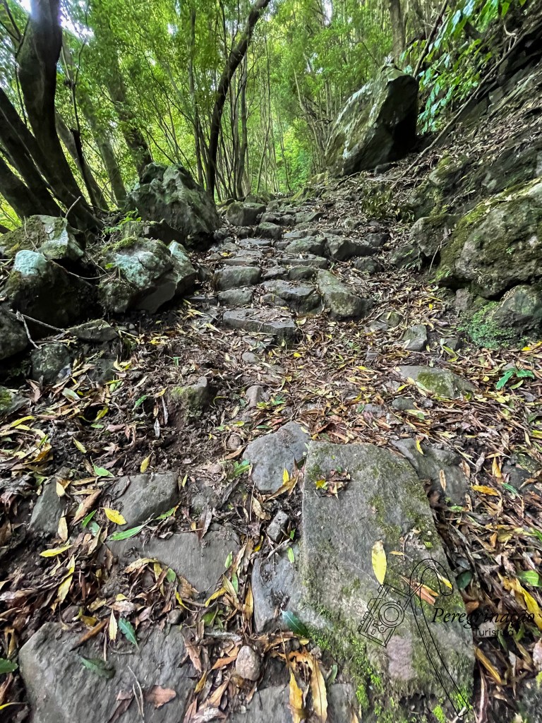 Mais à frente, começa-se a descer para a Travessa do Espigão e o caminho prosseguiu para o trilho do Caminho Novo que devia ser de terra batida, contudo, devido às chuvas era pura lama, estava tão escorregadio que a organização optou por meter em algumas zonas do caminho cordas para o pessoal não escorregar por ali abaixo e acabar a prova mais depressa, porque ainda faltava a parte melhor, a subida do Forno da Cal, que para lá chegar foi preciso descer umas benditas escadas, atravessar a Estrada Regional e cortar para o Parque de Merendas do Jardim da Ribeira do Guilherme.