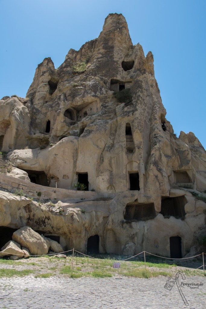 O dia já ia longo quando chegamos à Capadócia, mas antes de nos recolhermos ao hotel e sem sabermos o que nos esperava um desvio ao Vale dos Pombos (Güvercinlik Vadisi), assim chamado por neste local existirem milhares de pequenos pombais esculpidos na rocha (tufo vulcânico). Em tempos idos eram aqui criados pombos como fonte de alimento. Na atualidade tal como pudemos comprovar continuam a existir muitos pombos neste local. No entanto, a dádiva maior do desvio foi contemplar o Göreme (o Vale de Göreme e seus arredores fazem parte desde 1985 da Lista do Património Mundial da UNESCO e desde 1986 do Parque Nacional) com o Castelo de Üçhisar (Uçhisar Kalesi foi construído na zona mais alta da região, 1300 m. Este edifício que ao longo dos tempos foi usado como forte e refúgio tem 50 m de altura e 20 andares. Andar dentro deste monumento é como andar num labirinto, aqui podemos ver capelas, mosteiros, habitações, refeitórios, armazéns e salas comuns. Foi escavado em tufo vulcânico e a sua forma é uma mistura entre um queijo suíço e os montículos que as térmitas constroem em África). Esta paisagem parece um vale místico saído dum planeta qualquer ainda por descobrir, tal é o encanto que fico pasmada olhando todo este cenário surreal absorvendo tamanha beleza.