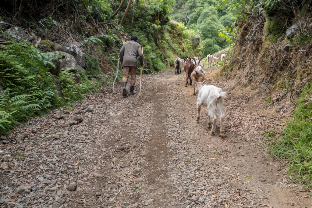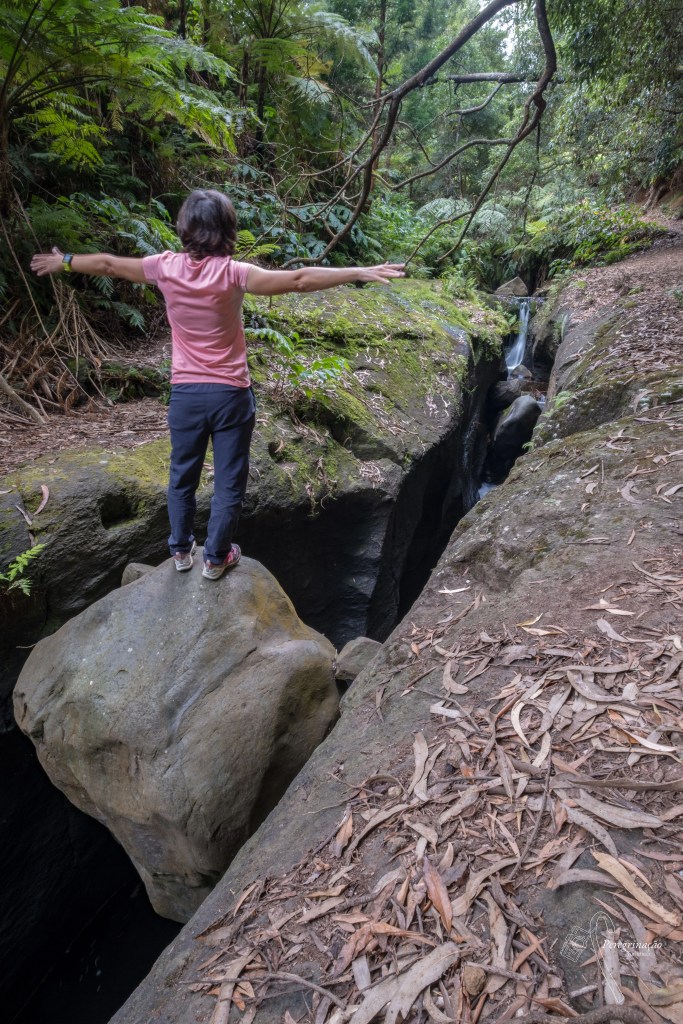 Meto o tripé na mochila e agarro na Menina da Ilha Rainha para seguirmos rumo a Agualva, para aproveitar o dia da melhor forma possível. Chegadas a esta freguesia somos recebidas por multidões e portas tapadas pelo que logo percebemos que mais tarde haveria tourada à corda, mas decidimos manter o plano já que o dia ainda agora tinha começado, estacionamos o carro e rumamos ao Parque das Frechas (sobre este parque não me vou alongar, uma vez que já fiz um pequeno texto sobre o mesmo que pode ler aqui). Entramos no parque e iniciamos a subida até à zona de lazer e ao contrário da primeira vez que aqui estive que me foi permitido fazer desvios para ir ver os caminhos errados, desta vez desvios só mesmo para ir fotografar as cascatas. A ribeira corria e as duas primeiras cascatas estavam bastante fotogénicas, mas o mesmo já não se pode dizer da última queda de água, a grandalhona, que pouca água tinha pelo que não a fotografei, deixei para uma próxima passagem. Noto, e até comentei com a Menina da Ilha Rainha, que fizeram uma espécie de dique para conter a água que corre desta cascata e formar um lago, que a meu ver não faz sentido, porque forma um lago tão raso que nem sequer dá para as pessoas tomarem banho e a água que ali fica parada tem mau aspeto. Seguimos, chegando à zona de lazer onde fizemos uma paragem para retemperar as forças, após esta pequena pausa retomamos a caminhada. Saímos do parque para iniciarmos o trilho novidade, uma vez que nenhuma tinha-o feito e este revelou ser uma agradável surpresa.