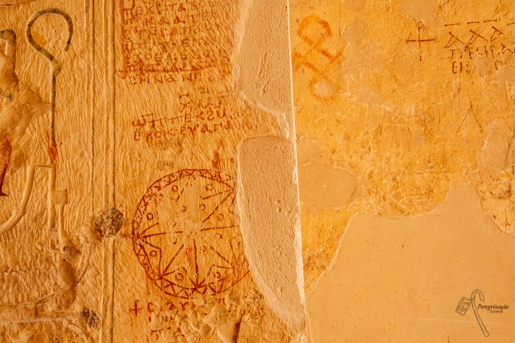 Não satisfeita de repor a vitamina D decido fazer mais um desvio até a um dos templos mais belo do Egito, que fica bem pertinho do Vale dos Reis e falo claro está de Djeser-Djeseru (“A maravilha das maravilhas”) ou como é comummente conhecido o templo mortuário de Hatshepsut, a única mulher que governou o Egito durante um longo período. Este monumento está localizado no Vale de Deir el-Bahari e é obra do arquiteto real Senenmut, que muitos historiadores consideram ser o amante secreto de Hatshepsut. Este edifício distingue-se dos demais templos funerários do seu tempo por ser composto por três pátios de grandes dimensões, que são ligados entre si por rampas. No último pátio atinge-se o santuário um espaço escavado na rocha que é dedicado a Amon. Chego ao complexo e sinto que é desta que o sol irá ganhar-me, mas não desisto de ver tudo de perto, já que ao longe é uma imagem única e marcante que nunca mais esquecerei. Encaminho-me para o primeiro pátio e começo a imaginar o jardim que aqui existia as árvores de mirra (que, na atualidade podemos ver o que resta de uma protegida por uma cerca metálica) e arbustos exóticos trazidos de Punt, os lagos e as esfinges (atualmente apenas existe uma) que me guiam até à primeira rampa, em pensamentos deixo-me invadir pelo fresco deste local em outros tempos e avanço subindo pelos degraus que existem a meio desta rampa, para chegar ao segundo pátio, que deve ser do tamanho dum campo de futebol ao fundo mais uma rampa que leva ao terceiro pátio, subo novamente pelas escadas, a receber-me estão duas estátuas de falcões (Horus) ou o que restam delas e a acompanhar-me na subida, esculpidas na pedra do muro da rampa, serpentes. Chego ao terceiro pátio e sou recebida por estátuas da rainha osírica (sabemos que está morta porque a barba de faraó está encaracolada). A chegada a este patamar teve um grande impacto em mim, já vinha a marcar as grandes estátuas ao longe, pois pareciam estarem sempre a olhar para mim e realmente devido à forma como estão esculpidas ficamos com a sensação que para todos os lados que vamos estamos a ser vigiados, só deixei de me sentir vigiada quando passei pelo portal de arenito rosa e entrei pátio do santuário. Aqui dei a volta ao pátio e aproveitei para me, digamos, refrescar entrando no Santuário de Amon. Após este enganar do corpo e da mente com o fresco relativo que se sentia dentro do santuário decido enfrentar o meu arqui-inimigo Sol e saio do templo em passo apertado para a última visita do dia antes de ir para o fresco do quarto do barco que me levará a descer o Rio Nilo rumo ao Assuão.