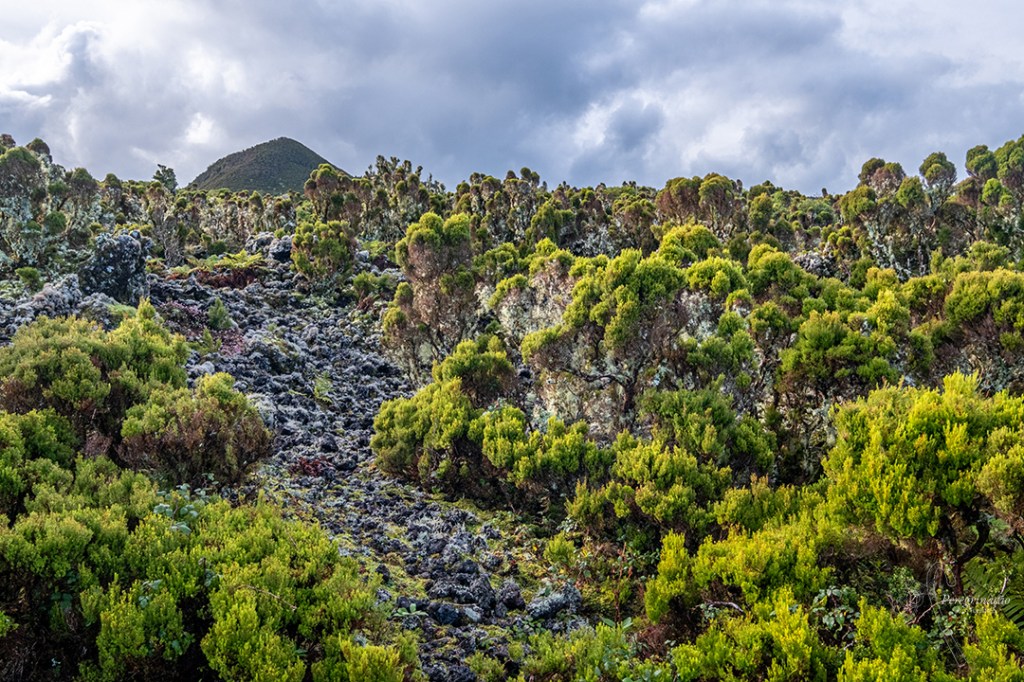Para acabar o ano em grande e assim atrair boas energias para o ano bissexto que se aproxima, nada como uma caminhada longa. Aproveitando que o tempo pela ilha lilás (Terceira, Açores) neste dia previa e concretizou-se estar aprazível para caminhar, fomos meter os pés no trilho oficial da Malha Grande, esta seria estreia para ambas, nem eu, nem a Menina da Ilha Rainha havíamos feito este percurso por completo. Para mim, a parte que passa na Rocha de Chambre já não ia ser surpresa. Este trilho desenrola-se dentro da Área Protegida para a Gestão de Habitats ou Espécies do Planalto Central e Costa Noroeste, faz uma pequena incursão na Reserva Natural do Biscoito da Ferraria e Pico Alto e acaba na área de paisagem protegida das vinhas dos Biscoitos.